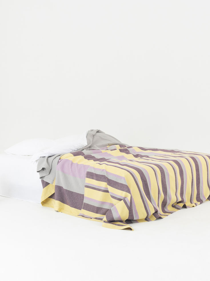 We're excited to introduce to you our unique design, The Hues bed cover collection! The Hues Bedspread is handwoven in 100% flat-weave cotton from dead stock yarns in historic Turkey. Providing a medium/heavy weight fabric to complete your bed perfectly, this unique bedspread is woven 40% thicker than our peshtemals so it gives a cozy feeling as an all-season blanket. This fabric is designed for multi-use and sturdy enough to take outdoors for picnics.